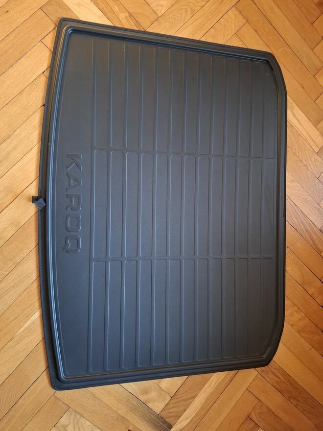 Dwustronna oryginalna mata do bagażnika Skoda Karoq. Odporna na zabrudzenia i łatwa do czyszczenia. Idealna ochrona przed zabrudzeniami i uszkodzeniami podczas transportu bagażu. Produkt uzywany ale jak nowy, doskonałej jakości. Kupiona w salonie skoda. Zalecany odbiór osobistyJan