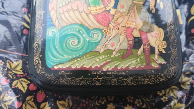 Jak w tytule Nowa, piękna szkatułka Rękodzieło z rosyjskiej szkoły palech..